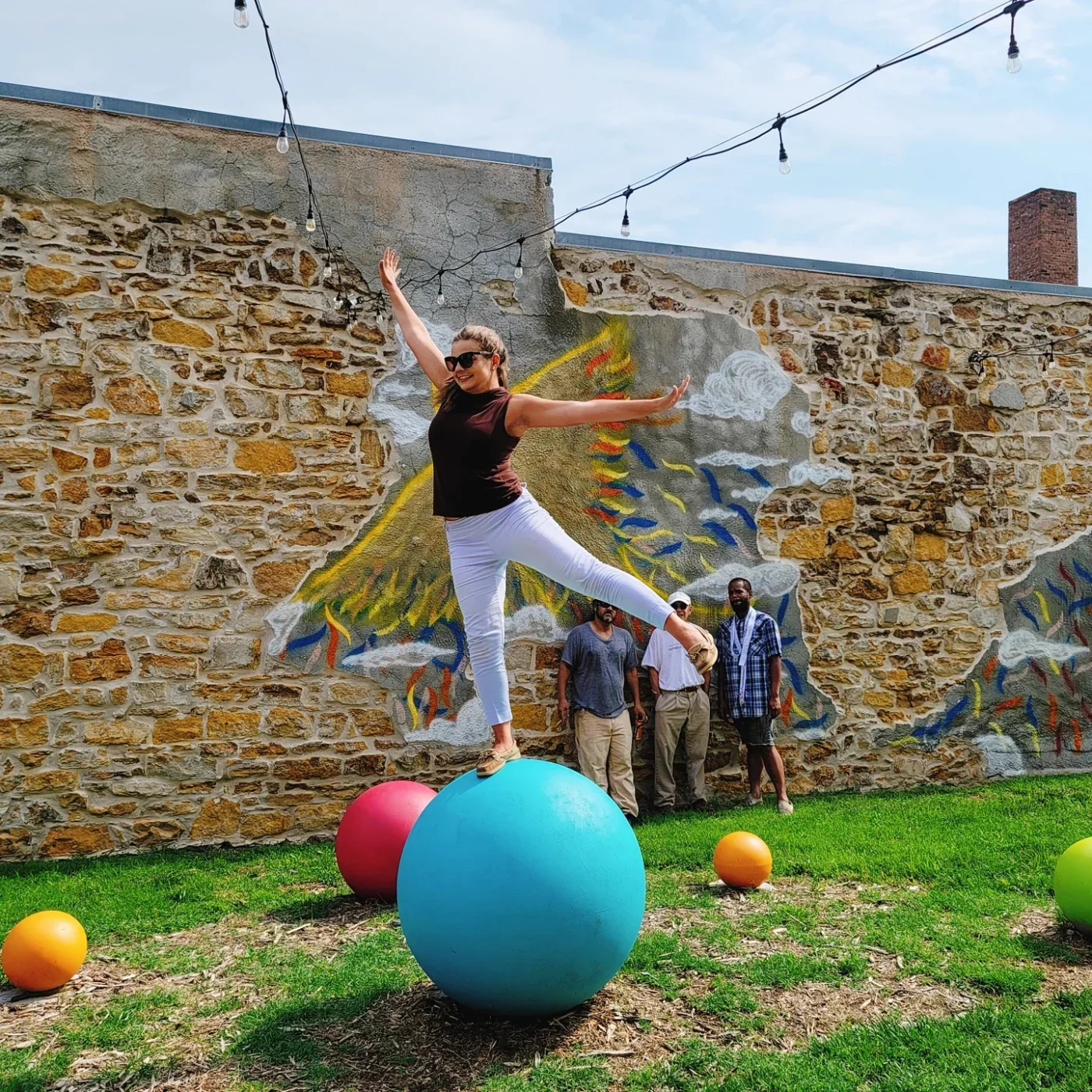 In 2021 the addition of Breezeway Park was implemented into the district. This kid-friendly park includes various murals on the sidewalk with multiple interactive kids activities, rotating sculptures at each end, a model train from the Great Overland Station, peek-a-boo Otto, and a rising Phoenix (created by Artist Jordan E. Brooks) The colorful balls add charecter to the park, allowing kids to play while parents take a much needed break!